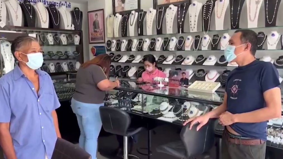 นายเนิ่น พัฒแก้ว อายุ 61 ปี ชาว อ.อ่าวลึก จ.กระบี่ นำก้อนหินกลมเหมือนไข่มุกสีเหลือง ขนาดเท่าปลายนิ้วก้อย มาให้เจ้าของร้านจำหน่ายเครื่องประดับสร้อยมุกชื่อดังของ จ.กระบี่ และเป็นผู้เชี่ยวชาญด้านไข่มุก ตรวจสอบว่า ก้อนกลมๆ สีเหลืองดังกล่าวเป็นไข่มุกแท้หรือไม่ แต่ปรากฏว่าเจ้าของร้านไม่อยู่ พบเพียงพนักงานขาย ซึ่งได้ให้ข้อมูลว่า ก้อนหินกลมๆ ที่นายเนิ่น นำมาให้ตรวจสอบ เป็นไข่มุกแท้ แต่จะเป็น “มุกเมโล” ที่มีราคาแพงหรือไม่นั้น ต้องส่งไปตรวจที่ห้องปฏิบัติการตรวจสอบอัญมณี กรุงเทพฯ จึงจะทราบแน่ชัดว่าเป็นมุกชนิดใด