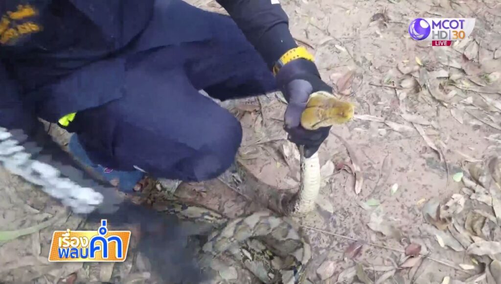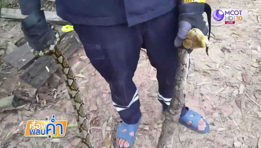นายศุภจิตร บอกว่า เดินมาหลังบ้านเพื่อให้อาหารไก่ และเอาผ้ามาคลุมกรงไก่ กลัวไก่ชนที่เลี้ยงจะเปียกฝน ขณะเดินมาข้างรั้วเพื่อปลดทุกข์ แต่ยังไม่ได้มองตาข่ายที่กั้นไว้ไม่ให้ไก่หลุดไปข้างนอกขณะที่ยืนปัสสาวะอยู่นั้น เหลือบไปเห็นงูขนาดใหญ่ติดอยู่ในตาข่าย และพุ่งเข้ามาจะงับกล่องดวงใจ ตกใจกระโดดถอยออกมาได้ทัน ตอนนั้นขาสั่นไปหมด จนกางเกงเปียกเลอะเทอะ พอตั้งสติได้วิ่งออกมาโทรขอความช่วยเหลือเจ้าหน้าที่ให้มาจับงูออกไป. – สำนักข่าวไทย