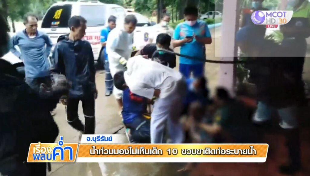 บุรีรัมย์ 27 ก.ย. – เตือนภัยน้ำท่วมมองไม่เห็น ด.ช.วัย 10 ขวบ พลาด ขาติดท่อระบายน้ำหน้าอาคารเรียน ร้องลั่นด้วยความความเจ็บปวด กู้ภัยใช้เวลา 20 นาที เอาขาออกมาได้