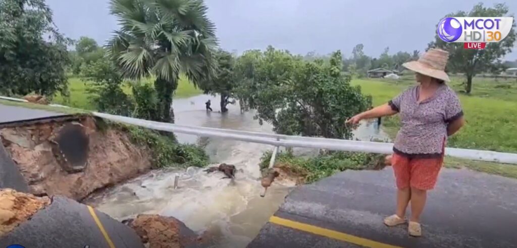 อุบลราชธานี 29 ก.ย. – สำรวจสถานการณ์น้ำ จ.อุบลราชธานี หลัง “พายุโนรู” เคลื่อนผ่าน ประชาชนยังเผชิญน้ำท่วม แม่น้ำมูลเพิ่มระดับสูงต่อเนื่อง บ้านเรือนริมแม่น้ำจม