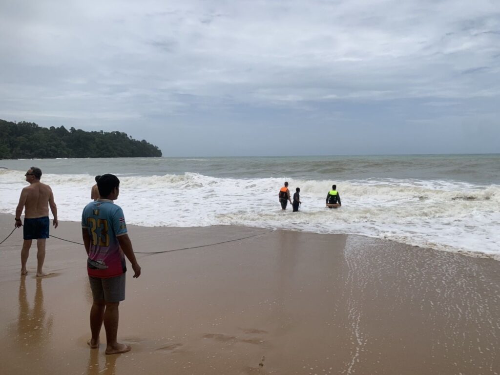 พังงา 1 ต.ค. – นักท่องเที่ยวต่างชาติถูกคลื่นซัดจมทะเลหน้าชายหาดเขาหลัก จ.พังงา ยังช่วยเหลือขึ้นไม่ได้ เนื่องจากคลื่นลมแรง