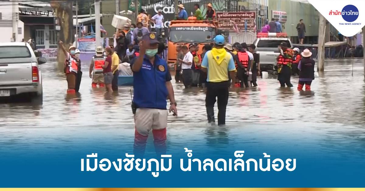 นายกเทศมนตรีเมืองชัยภูมิ ให้ข้อมูลว่า มวลน้ำไปครอบคลุมพื้นที่ตัวเมืองร้อยละ 70 ประชาชนได้รับผลกระทบโดยตรงกว่า 15,000 คน จากประชากรราว 35,000 คน ขณะนี้ระดับน้ำยังล้นพนังกั้นน้ำลำห้วยเสวกว่า 1 กิโลเมตร ลุ้นให้ลดลงอีกเพียง 30 เซนติเมตร จะเหลือล้นแนวพนังเพียง 200 – 300 เมตร ซึ่งจะทำให้ควบคุมการสูบระบายน้ำได้อย่างมีประสิทธิภาพ