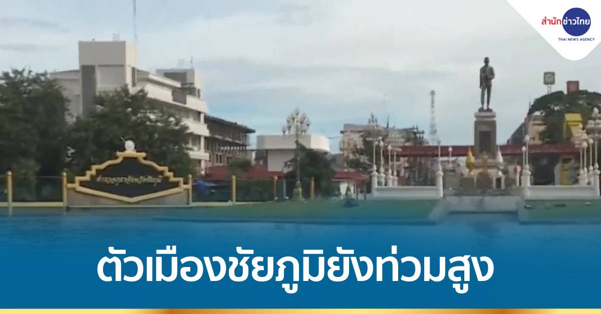 จังหวัดชัยภูมิ ฝนตกเมื่อคืนที่ผ่านมา ทำให้ปริมาณน้ำล้นสปิลเวย์เขื่อนลำปะทาวล่างเพิ่มขึ้น คาดต้องใช้เวลา 5 วัน จึงลดต่ำกว่าสปิลเวย์ ส่วนถนนสายต่าง ๆ ในเขตเทศบาลเมืองชัยภูมิระดับน้ำทยอยลดลงอย่างต่อเนื่อง ถนนที่ยังมีน้ำท่วมสูง คือ ถนนรอบอนุสาวรีย์เจ้าพ่อพญาแล นอกจากเป็นพื้นที่เศรษฐกิจ มีธุรกิจร้านค้ามากมายยังเป็นที่ตั้งสถานที่สำคัญหลายแห่ง เช่น ตำรวจภูธรจังหวัด ศาลากลางจังหวัด โรงพยาบาลชัยภูมิ น้ำยังท่วมสูง ทำให้การเข้าใช้บริการของผู้ป่วยยังคงเป็นไปอย่างยากลำบาก แม้จะมีการต่อสะพานให้เดินสัญจรข้ามมวลน้ำก็ตาม