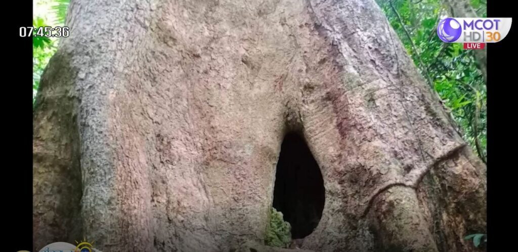 ต้นไม้ที่มีโพรงนี้ชื่อไทย “ช้าม่วง” เป็นต้นไม้กลุ่มวงศ์ยาง อายุกว่า 100 ปี สูงกว่า 40 เมตร โพรงต้นไม้นี้เกิดตามธรรมชาติ แคบเข้าได้ทีละคน ต้องก้มศีรษะเพื่อเข้าในโพรง มีพื้นที่ในโพรงให้คนเข้าไปได้ 6-7 คน ความสูงของโพรง 3 เมตร เป็นที่พักอาศัยของ “ค้างคาวแวมไพร์แปลงเล็ก” Lesser false vampire bat บริเวณที่ค้างคาวอยู่สูงถึง 5 เมตร จากพื้น ค้างคาวชนิดนี้อาศัยในถ้ำและโพรงต้นไม้ ต้นไม้ต้นนี้อยู่ในป่าที่สมบูรณ์ โชคดีไม่เป็นจุดที่นักท่องเที่ยวนิยมไปเยี่ยมชม เพราะต้องให้คนในพื้นที่พาเดินเข้าไป อยู่ในบริเวณคลองวังหีบ หนานตากผ้า ต.นาหลวงเสน อ.ทุ่งสง จ.นครศรีธรรมราช