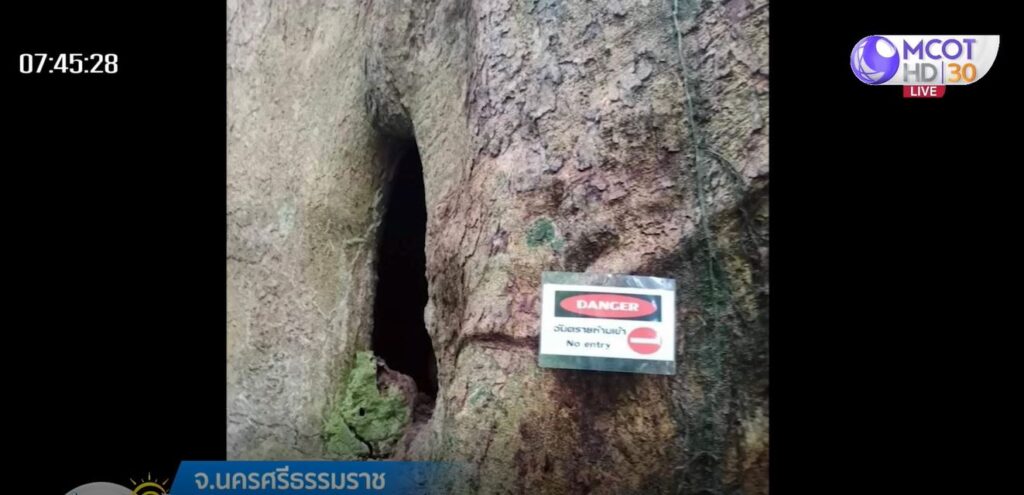 นครศรีธรรมราช 5 ต.ค. – เจ้าหน้าที่สาธารณสุข อ.ทุ่งสง จ.นครศรีธรรมราช ทำป้ายเตือนห้ามเข้าในโพรงไม้ “ช้าม่วง” ชมค้างคาว หลัง นพ.มนูญ ลีเชวงวงศ์ แพทย์เฉพาะทางด้านโรคระบบการหายใจ โรงพยาบาลวิชัยยุทธ โพสต์เตือนพบผู้ป่วยโรคฮิสโตพลาสโมซิส หลังเข้าโพรงต้นไม้ดังกล่าว