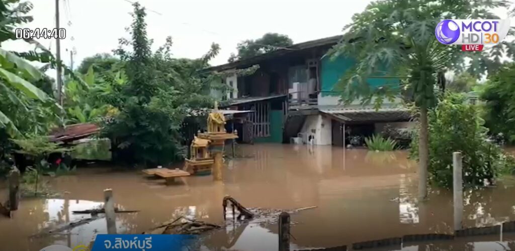 ภูมิภาค 5 ต.ค. – จ.สิงห์บุรี อ่วม! คันดินกั้นน้ำริมแม่น้ำเจ้าพระยาพังยาวกว่า 10 เมตร ทำให้น้ำทะลักท่วมบ้านเรือนประชาชนหมู่ 7 ต.ประศุก ได้รับความเสียหายกว่า 120 ครัวเรือน