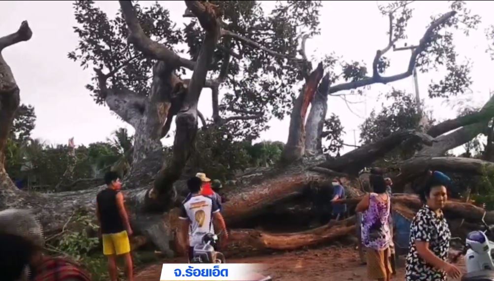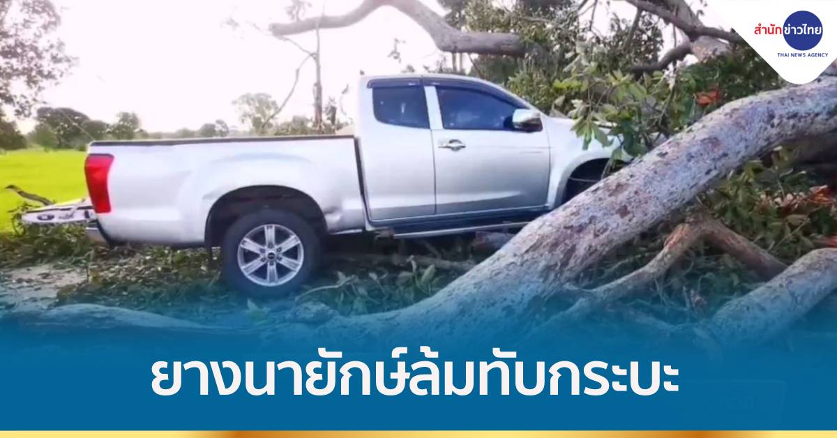 ร้อยเอ็ด 7 ต.ค. – ต้นยางนายักษ์อายุนับร้อยปี ริมถนน อ.จตุรพักตรพิมาน จ.ร้อยเอ็ด ล้มทับรถกระบะสองผัวเมีย ได้รับบาดเจ็บ