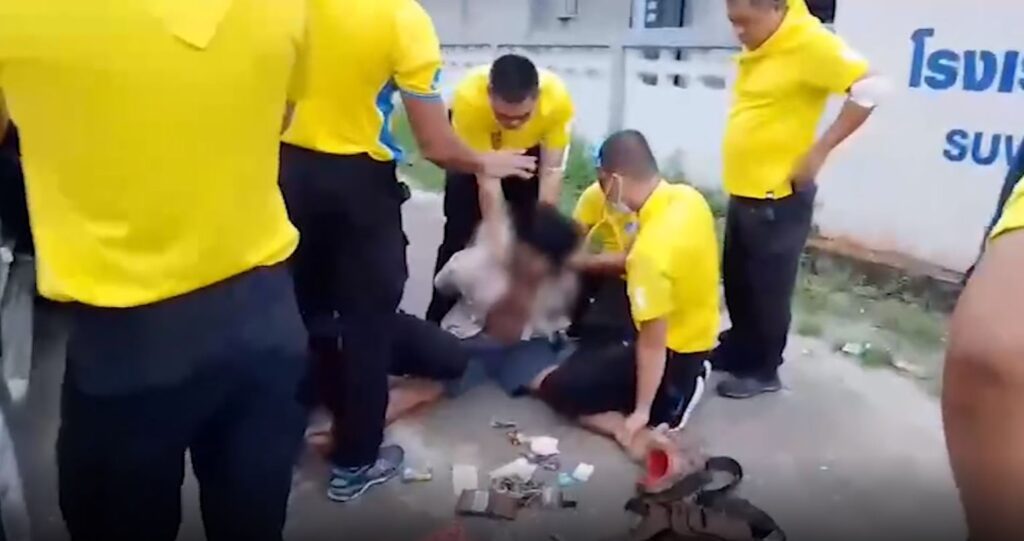 เจ้าหน้าที่เข้าควบคุมตัวชายอายุ 44 ปี หลังเดินทางไปที่โรงเรียนแห่งหนึ่งใน อ.ร่อนพิบูลย์ จ.นครศรีธรรมราช เพื่อจะรับบุตรสาว วัย 7 ขวบ กลับบ้าน แต่ครูไม่ยอมให้กลับเพราะเด็กกำลังสอบ และยังไม่ถึงเวลาเลิกเรียน ซึ่งขณะนั้นภรรยาของชายคนดังกล่าวได้เดินทางมาที่โรงเรียนพอดี และไปแจ้งตำรวจที่ป้อมข้าง ร.ร. ว่าสามีเมายาบ้าและจะมาเอาตัวลูก ตำรวจจึงเข้ามาที่ ร.ร. และจะจับตัว แต่ชายคนดังกล่าวได้วิ่งขึ้นรถเพื่อจะหลบหนี แต่เจ้าหน้าที่ได้สกัดจับและใช้ปืนยิงใส่ล้อรถ ก่อนจะจับกุมตัวได้ เมื่อตรวจค้นในรถกระบะของผู้ก่อเหตุพบปืน 2 กระบอก อาวุธมีด และยาบ้า 17 เม็ด