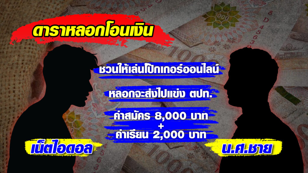 ชลบุรี 7 ต.ค. – แจ้งความเน็ตไอดอลชายชื่อดัง หลอกนักศึกษาโอนเงินค่าสอนเล่นโป๊กเกอร์ ก่อนข่มขู่ว่าตกเป็นผู้ต้องหาฟอกเงิน ให้หาเงินมาปิดคดี จนโอนเงินให้ไปกว่า 16 ล้านบาท