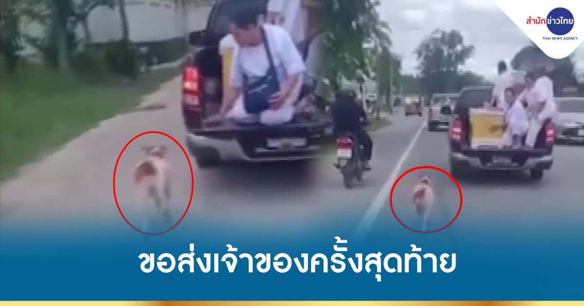 ชลบุรี 8 ต.ค.-ขอส่งเจ้าของครั้งสุดท้าย สุนัขวิ่งตามรถบรรทุกหีบศพเจ้าของ ที่ญาตินำขึ้นรถไปทำพิธีฌาปณกิจที่วัด เป็นระยะทางไกลเกือบ 10 กม.