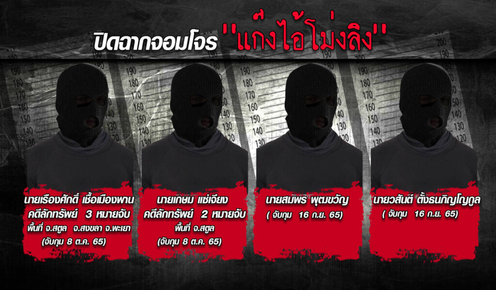 ส่วนอีกราย คือ นายเกษม ถูกจับกุมได้บนถนนหน้าจุดตรวจปากบาง หมู่ 8 ต.ตาเนาะแมเราะ อ.เบตง จ.ยะลา รายนี้มีหมายจับติดตัวในคดีลักทรัพย์ในพื้นที่ จ.สตูล อยู่ 2 หมาย หลังจากเมื่อ 16 กันยายนที่ผ่านมา จับกุมหัวหน้าแก๊งไปแล้ว 2 คน คือ นายสมพร และนายวสันต์ ทั้งนี้ แก๊งโจรไอ้โม่งลิง เคยมีประวัติก่อเหตุลักทรัพย์หลายจังหวัดทั่วประเทศ ตั้งแต่พื้นที่ใต้สุดที่ อ.เบตง จ.ยะลา จนถึงเหนือสุดที่ จ.เชียงราย รวม 25 คดี ในช่วงเวลา 7 ปี ระหว่างปี 2559 จนถึง 2565 กวาดทั้งเงินสด และทรัพย์สินไปกว่า 50 ล้านบาท