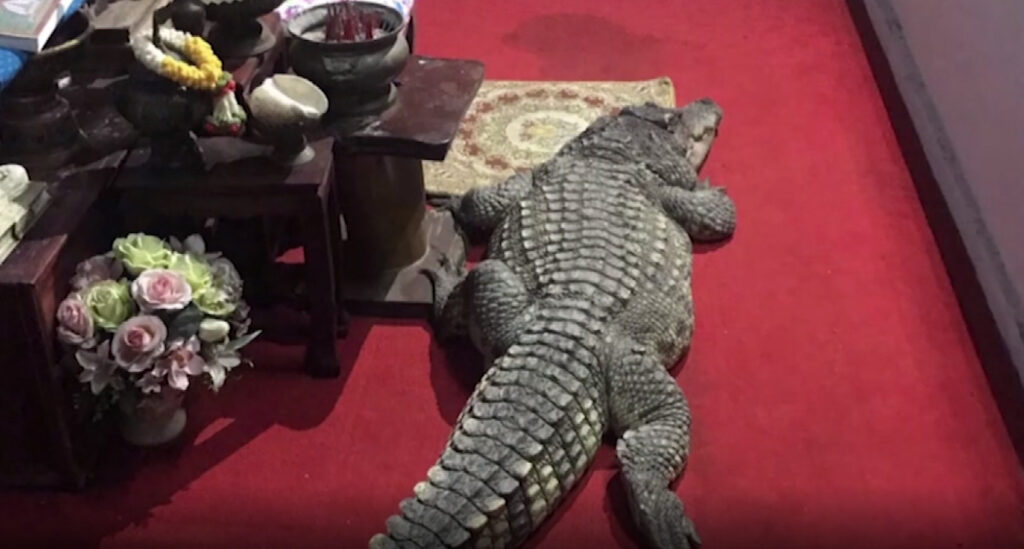 นายอธิพงษ์ ยังเล่าว่า “เจ้าทอง” เป็นจระเข้ที่เชื่องและไม่ดุร้าย ที่ผ่านมาไม่เคยกัดหรือทำอันตรายใคร ส่วนเรื่องอาหารการกิน “เจ้าทอง” จะกินซี่โครงไก่ เวลาหิวจะเดินมาที่ห้องครัวมาขอกินโครงไก่เอง กินครั้งละ 4-5 โครง ก็จะอิ่มไปได้หลายอาทิตย์ จากนั้นก็จะไปนอนเฝ้าห้องพระเป็นประจำ ซึ่งชาวบ้านในพื้นที่ต่างทราบดีว่าเจ้าทองหวงของในห้องพระมากๆ.-สำนักข่าวไทย