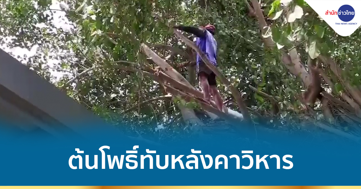 ชาวบ้านในพื้นที่ตำบลเกาะเกร็ด อำเภอปากเกร็ด จังหวัดนนทบุรี ช่วยกันตัดกิ่งต้นโพธิ์ อายุกว่า 150 ปี ที่ล้มทับหลังคาวิหารหลวงพ่อทันใจ ในวัดเสาธงทอง ที่ปลูกสร้างมานานกว่า 300 ปี เสียหาย หลังเกิดพายุฝน ลมแรง พัดกระหน่ำ เกิดน้ำท่วมขังในพื้นที่ดังกล่าว ด้านเจ้าอาวาสวัดเสาธงทอง บอกว่าตรวจสอบพบหลังคากระเบื้องโครงสร้างของวิหาร เสียหายค่อนข้างมาก จึงให้ชาวบ้านและคนงานช่วยกันตัดกิ่งต้นไม้ออก เพื่อให้น้ำหนักเบาลงลดความเสียหายของวิหาร แต่ยังมีอุปสรรคคือน้ำท่วมและมดแดงค่อนข้างเยอะ ขณะที่ชาวบ้านเชื่อว่าเป็นเพราะบารมีของหลวงพ่อทันใจ ที่ช่วยปกป้องบ้านเรือนของชาวบ้าน ที่อยู่บริเวณใกล้ต้นโพธิ์ ให้ปลอดภัย .-สำนักข่าวไทย