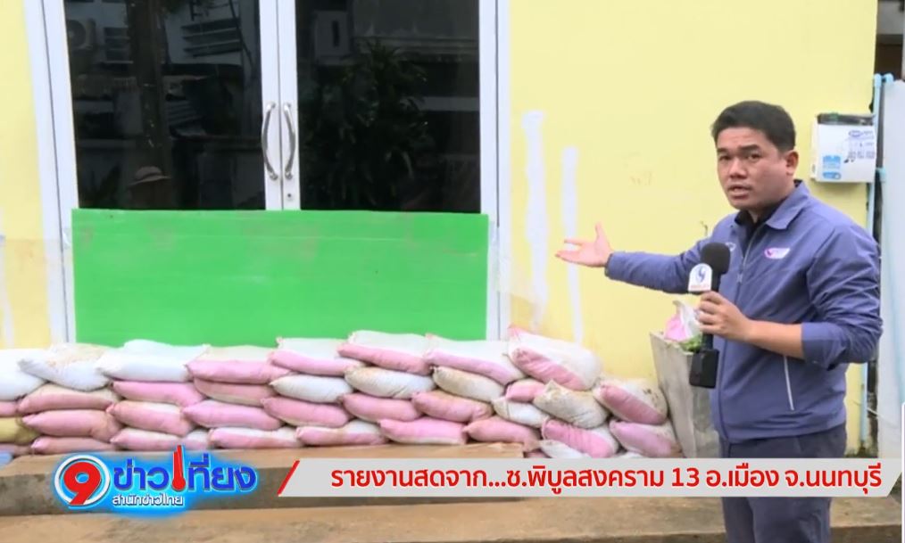 นนทบุรี 10 ต.ค.- สถานการณ์น้ำท่วมในซอยพิบูลสงคราม 13 จ.นนทบุรี ล่าสุดระดับน้ำลดลงแล้ว หลังเมื่อคืนแนวคันกั้นน้ำพังทลาย น้ำทะลักท่วมหมู่บ้านสูงเกือบถึงเอว แต่ชาวบ้านไม่วางใจ เร่งเสริมกระสอบทรายให้สูงขึ้นอีก เนื่องจากคืนนี้น้ำทะเลจะหนุนสูงอีกครั้ง