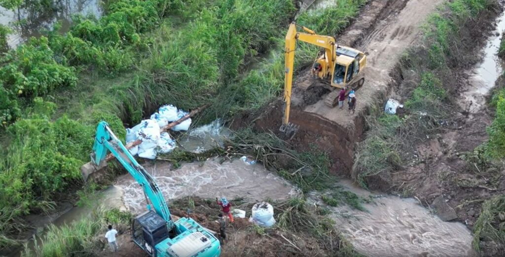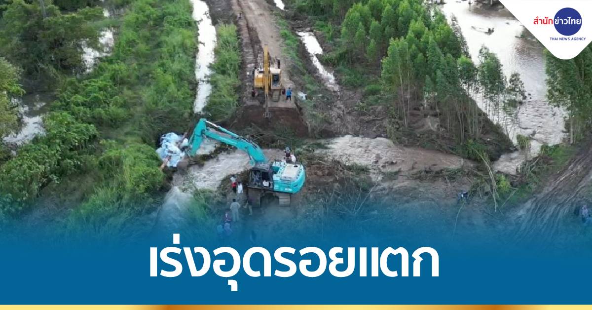 คลองชลประทาน 3L ที่บ้านคุยโพธิ์ อ.เมือง จ.ขอนแก่น ที่รับน้ำจากลำน้ำพองจนเกินพิกัด ทำให้น้ำกัดเซาะคันคลองชั้นในขาด ยาวประมาณ 10 เมตร น้ำทะลักเข้าพื้นที่การเกษตรของชาวบ้านอย่างรวดเร็ว เจ้าหน้าที่โครงการส่งน้ำและบำรุงรักษาหนองหวาย สำนักงานชลประทานที่ 6 พร้อมด้วยเจ้าหน้าที่ชลประทานจังหวัดต้องเร่งนำบิ๊กแบ็กมาอุดรอยแตกเพื่อลดปริมาณน้ำที่จะทะลักเข้าท่วมพื้นที่การเกษตรของชาวบ้าน