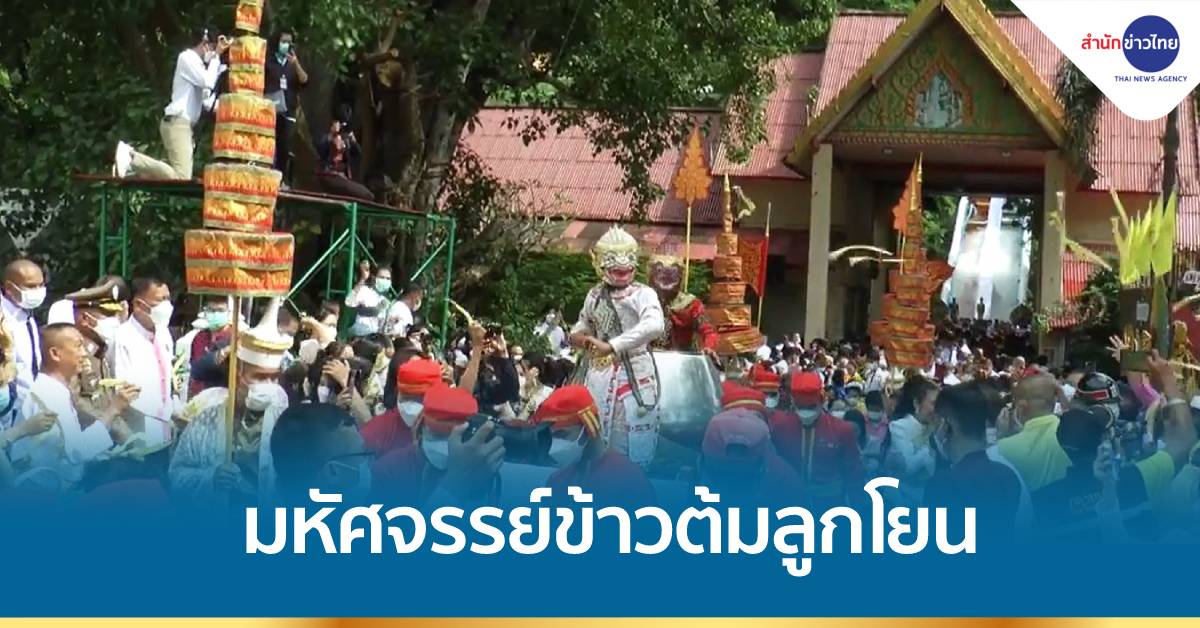 สระบุรี 11 ต.ค.- ประชาชนจำนวนมากร่วมใจสืบสานประเพณี “ตักบาตรเทโวโรหณะ มหัศจรรย์ข้าวต้มลูกโยนแห่งสระบุรี” ใส่บาตรข้าวต้มลูกโยน ข้าวสาร อาหารแห้ง ผลไม้ แก่พระภิกษุสามเณร ทำบุญออกพรรษา รำลึกวันที่พระพุทธเจ้าเสด็จกลับจากโปรดพระพุทธมารดาที่สวรรค์ชั้นดาวดึงส์