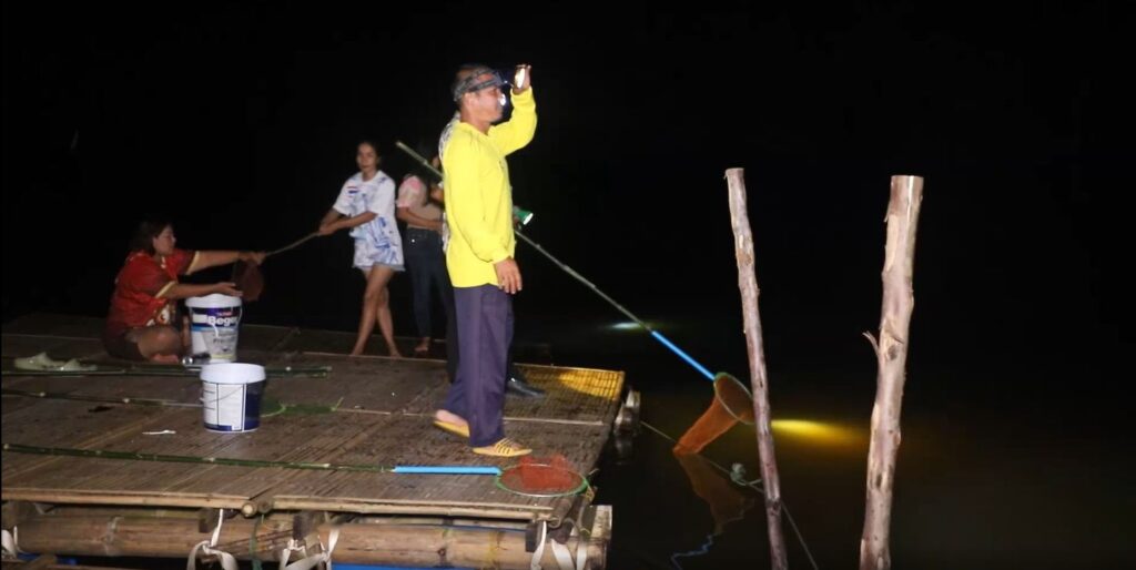 สำหรับปูใบไม้เมื่อสัปดาห์ที่แล้ว เริ่มมีชาวบ้านมาตักปูใบไม้มาแล้วครั้งหนึ่ง แต่ช่วงนั้นยังมีฝนตกค่อนข้างมาก ทำให้ปูใบไม้ออกมาจำนวนน้อย แต่เมื่อวานนี้ปริมาณฝนตกลดลงและเริ่มมีลมพัด เริ่มจะเข้าสู่ต้นฤดูหนาว ก็ทำให้ปูใบไม้ได้เริ่มลอยออกมาจากป่าโกงกาง ซึ่งจะออกมาเป็นปกติทุกช่วงออกพรรษา ซึ่งชาวบ้านในพื้นที่จะรู้เป็นอย่างดี ทำให้มีชาวบ้านมาเฝ้ารอรอบบริเวณริมคลองตั้งแต่ช่วงเย็นที่ผ่านมา ทุกคนจะมีสวิงที่มีด้ามไม้ความยาวประมาณ 3-4 เมตร เพื่อใช้ในการตักปูใบไม้ที่ลอยว่ายน้ำอยู่บนผิวน้ำ โดยปูใบไม้ที่ตักได้นั้นจะนำไปประกอบอาหารรับประทาน หรือบางรายตักได้มากก็จะนำไปขาย