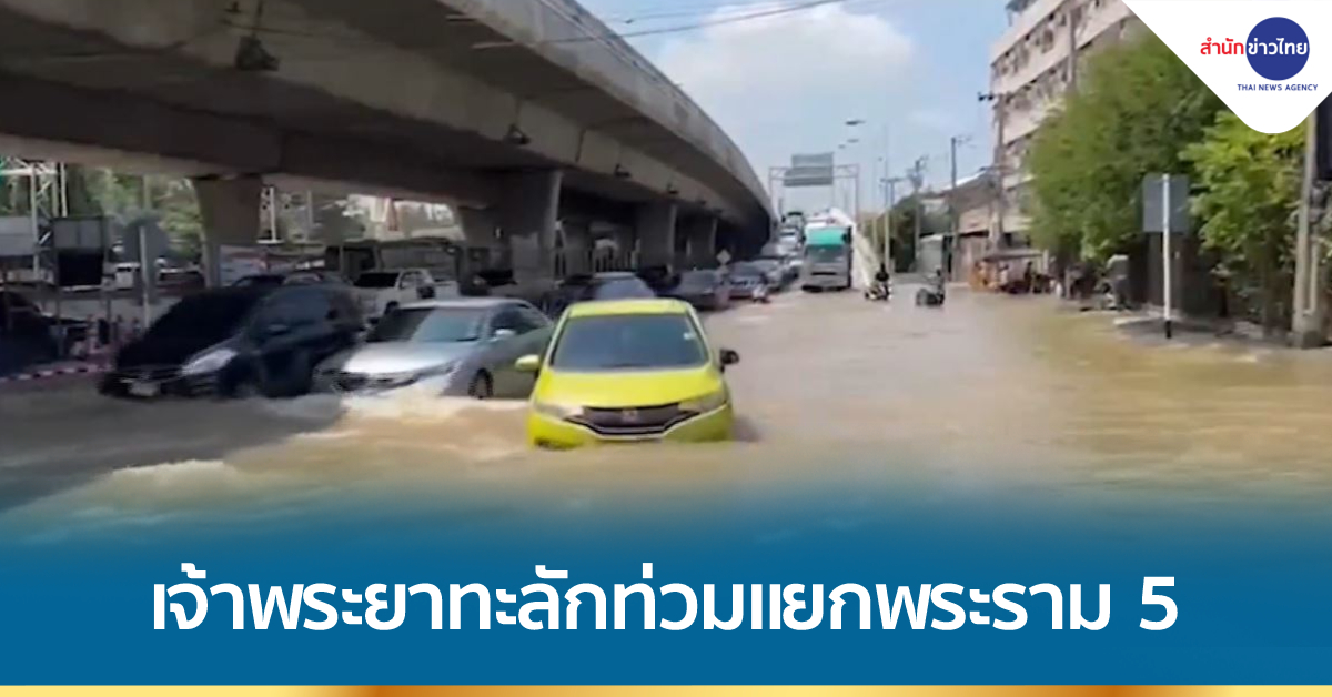 นนทบุรี 13 ต.ค. – น้ำจากแม่น้ำเจ้าพระยาล้นทะลักท่วมแยกพระราม 5 ถ.พิบูลสงครามทั้งฝั่งขาเข้า-ขาออก ระดับน้ำสูงประมาณ 10-30 ซม. รถเล็กสัญจรผ่านลำบาก ทำให้การจราจรติดขัด
