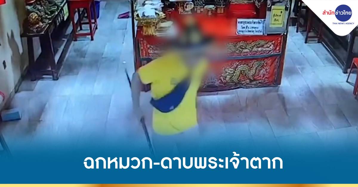 ขณะที่เจ้าหน้าที่ศาลเจ้าให้ข้อมูลว่า ผู้ก่อเหตุเดินเข้ามาถอดรองเท้าหน้าศาลเจ้า แล้วทุบศีรษะศิษย์เจ้าแม่กวนอิม 3-4 ครั้ง หยิบแจกันคว่ำลง หยิบเทียนกระแทกพื้น ก่อนเดินเข้าไปในศาลเอาเงินหยอดตู้ทำบุญ และทักทายรูปปั้น 18 อรหันต์ ก่อนฉกหมวกและหยิบดาบมากวัดแกว่งหน้าประตู ซึ่งในช่วงนั้นมีคนเห็น แต่ไม่มีใครกล้าห้าม เพราะกลัวผู้ก่อเหตุจะคลั่งไล่ฟัน ล่าสุด ตำรวจจับตัวตีนแมวรายนี้ได้ พร้อมของกลาง แต่เจ้าตัวยังอ้างทำไปไม่รู้ตัว ขณะที่การตรวจประวัติพบว่า สติไม่สมประกอบ รักษาตัวอยู่ แต่ขาดยา คาดว่าเป็นเหตุให้อาการกำเริบและก่อเหตุดังกล่าว.-สำนักข่าวไทย
