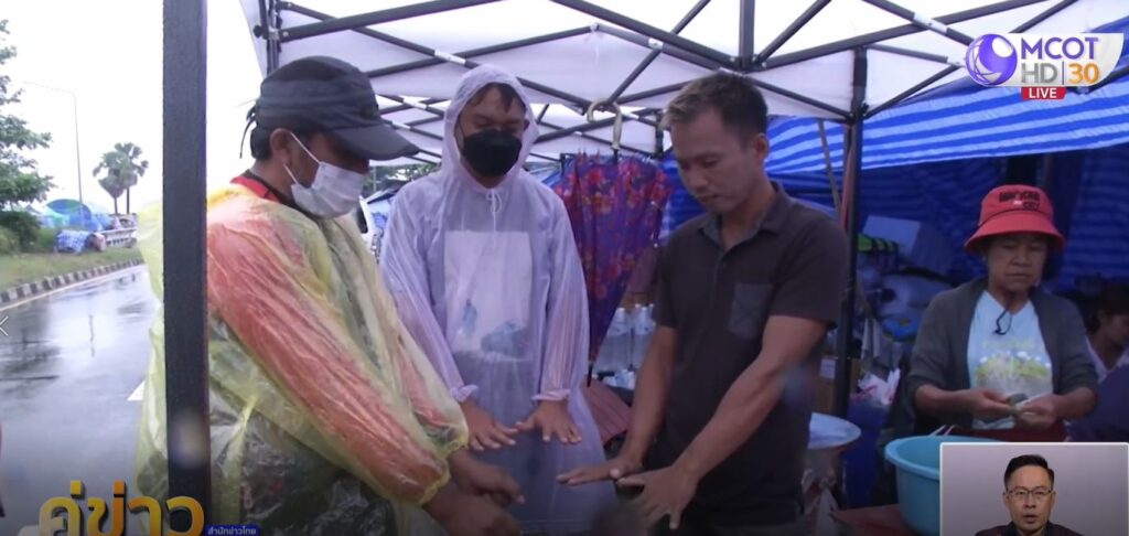 ชาวบ้านหาดสวนยา ที่อพยพขึ้นมานอนข้างถนนเป็นเวลากว่า 1 เดือน บริเวณสะพานรัตนโกสินทร์ 200 ปี เช้าวันนี้ต้องทนอยู่ด้วยความยากลำบาก เนื่องจากฝนตกตลอดทั้งคืน ทำให้น้ำรั่วซึมเข้ามายังที่นอน ประกอบกับอากาศที่เย็นลง ทำให้ต้องก่อไฟผิงสร้างความอบอุ่น สิ่งที่ทุกคนต้องการขณะนี้คือเสื้อกันหนาวและผ้าห่ม เนื่องจากของที่มีอยู่เดิมถูกน้ำท่วมหมด