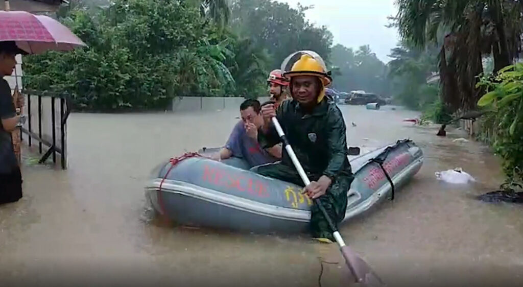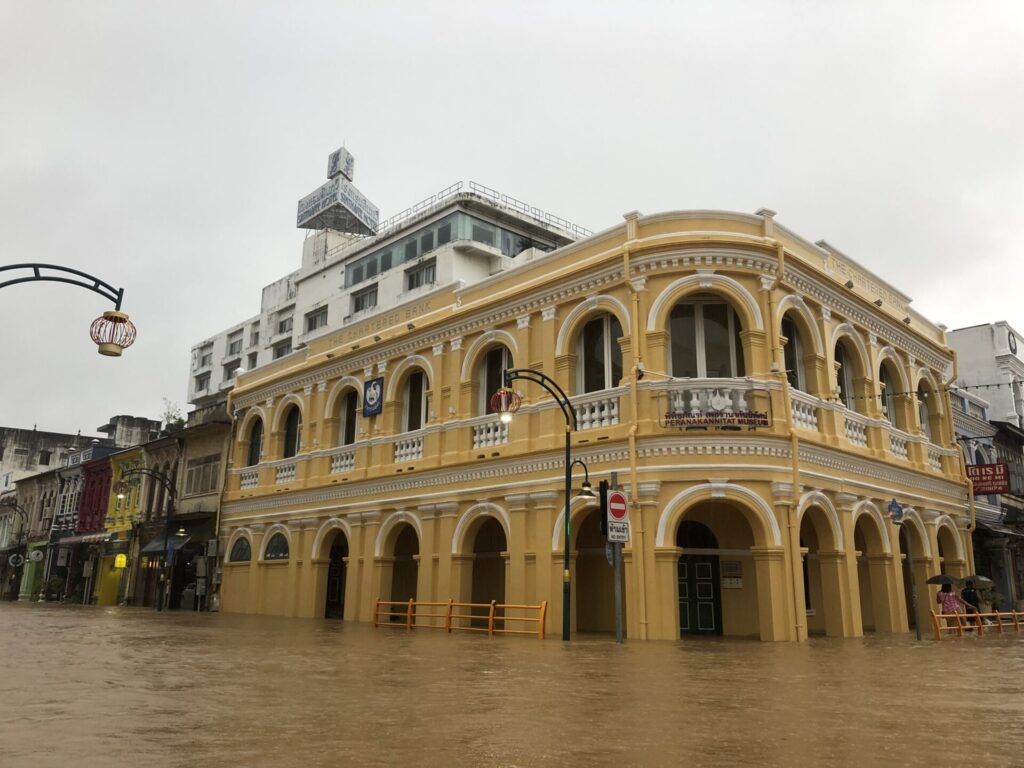 จ.ภูเก็ต ฝนตกหนักทั้งคืนต่อเนื่องถึงเช้า ประกอบกับน้ำทะเลหนุน ส่งผลทั้ง 3 อำเภอถูกน้ำท่วมสูง เขตเทศบาลนครภูเก็ต มีน้ำท่วมขังหลายจุด โดยเฉพาะบริเวณย่านเมืองเก่าอาคารชิโนโปรตุกีส ที่เป็นแลนด์มาร์กของจังหวัด และย่านเศรษฐกิจเมืองเก่า ถนนถลาง ส่วนบริเวณวงเวียนหอนาฬิกามีน้ำท่วมสูง 50 ซม. ถึง 1 เมตร รถเล็กไม่สามารถผ่านได้