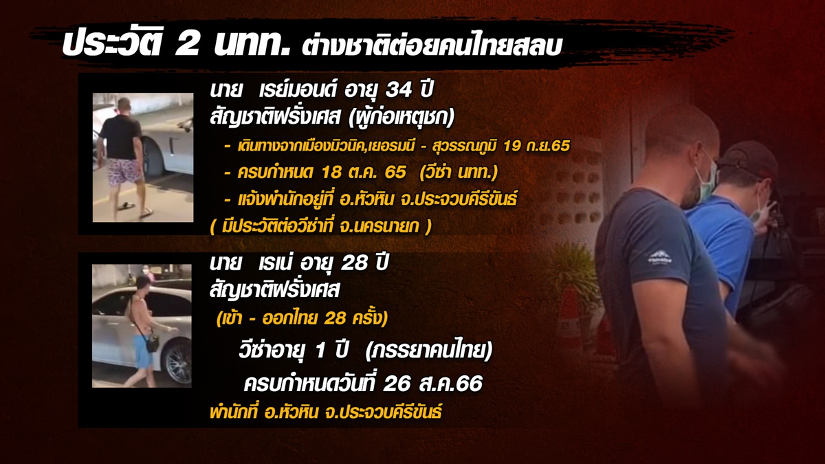 จากการตรวจสอบประวัติพบว่า ผู้ต้องหาสัญชาติฝรั่งเศส อายุ 34 ปี คนแรก ถือวีซ่านักท่องเที่ยว อายุ 30 วัน เดินทางเข้าไทยเมื่อวันที่ 19 กันยายนที่ผ่านมา และวีซ่าจะครบกำหนดในวันนี้ (18 ต.ค.) ส่วนผู้ต้องหาสัญชาติฝรั่งเศส อายุ 28 ปี ถือวีซ่า 1 ปี เพราะมีภรรยาชาวไทย เดินทางเข้า-ออกไทยมาแล้ว 28 ครั้ง ขณะที่ทั้ง 2 คน แจ้งการพำนักว่าอยู่ที่ อ.หัวหิน จ.ประจวบคีรีขันธ์ ส่วนการเดินทางมาเกาะสมุยนั้นเป็นการท่องเที่ยว และเดินทางมาตั้งแต่วันที่ 4 ตุลาคม
