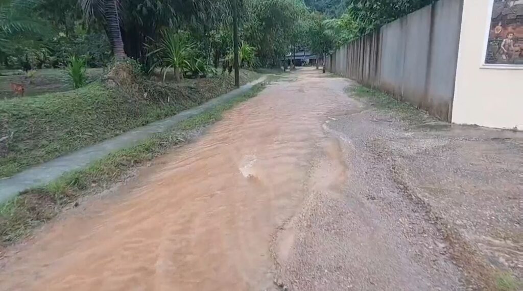 ฝนที่ตกหนักต่อเนื่อง ทำให้มีน้ำป่าไหลเอ่อเข้าท่วมบ้านเรือนประชาชน และถนนภายในหมู่บ้าน หมู่ 4 ตำบลเขาทอง อำเภอเมืองกระบี่ ทรัพย์สินเสียหาย เพราะขนย้ายทรัพย์สินไม่ทัน เบื้องต้นคาดว่าสาเหตุมาจากมีการขุดสระน้ำที่บ้านพักชาวต่างชาติฝั่งตรงข้าม ปิดทางระบายน้ำ ซึ่งอยู่ติดกับลำห้วย เมื่อฝนตกหนักหลายวันส่งผลให้น้ำเอ่อล้นลำห้วยแล้วไหลเข้าท่วมบ้าน และน้ำซัดบ่อน้ำพังเสียหาย