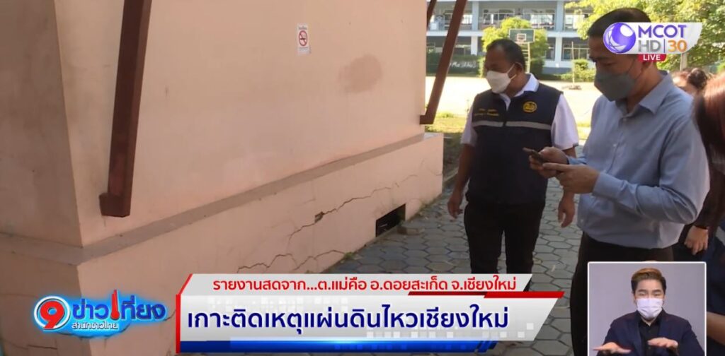 เชียงใหม่ 20 ต.ค. – ขณะนี้เจ้าหน้าที่เร่งสำรวจความเสียหายจากแผ่นดินไหวขนาด 4.1 ที่ จ.เชียงใหม่ ซึ่งพบทั้งบ้านและอาคารเรียนที่อยู่ใกล้จุดศูนย์กลางของแผ่นดินไหว แตกร้าว