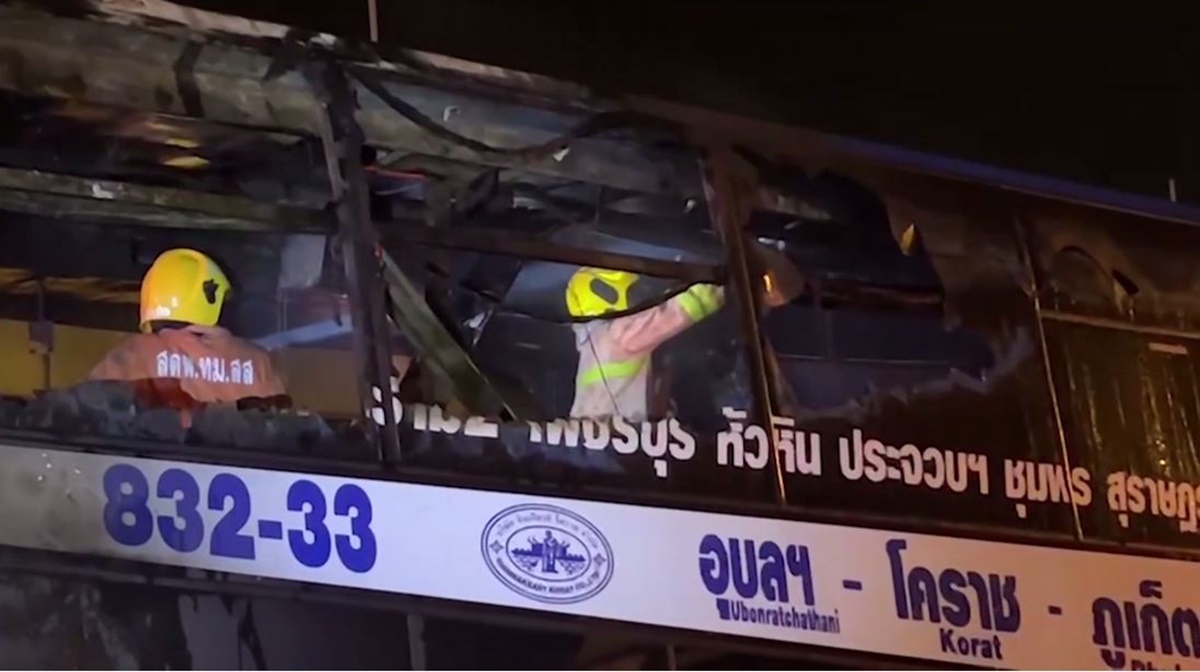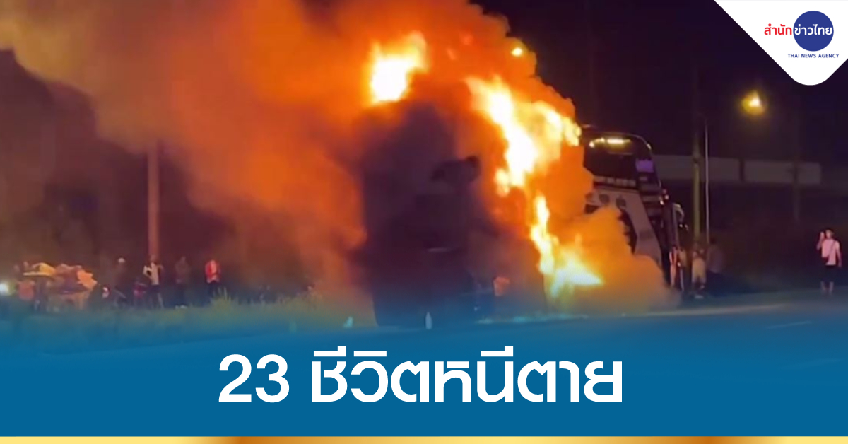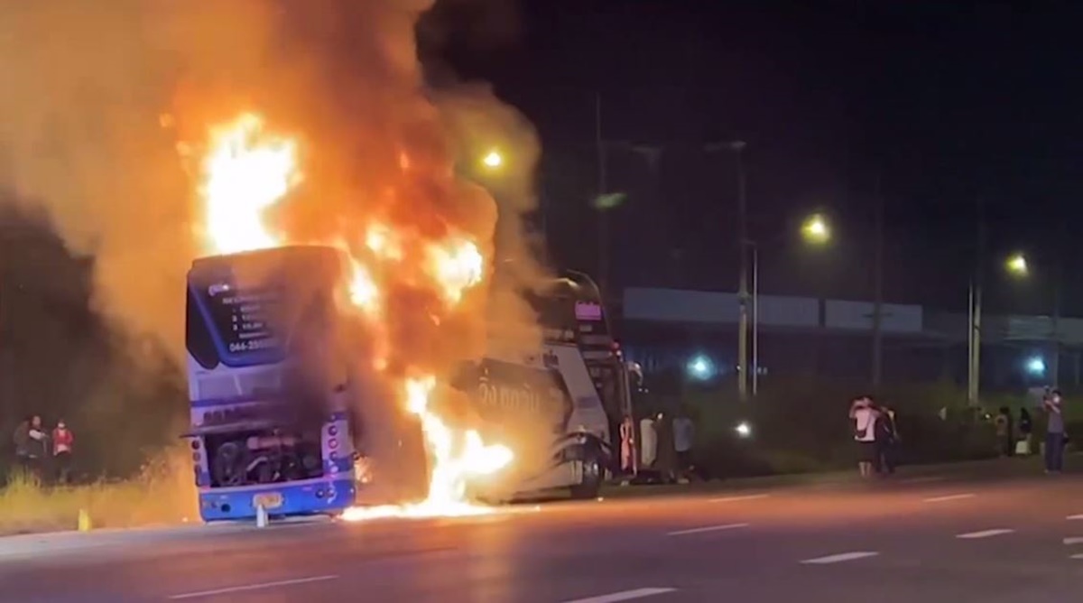 สมุทรสงคราม 21 ต.ค. – ระทึก! ไฟไหม้รถทัวร์ VIP อุบลฯ-ภูเก็ต บนถนนพระราม 2 ขาล่องใต้ อ.อัมพวา จ.สมุทรสงคราม ผู้โดยสาร 23 ชีวิต หนีตายอลหม่าน