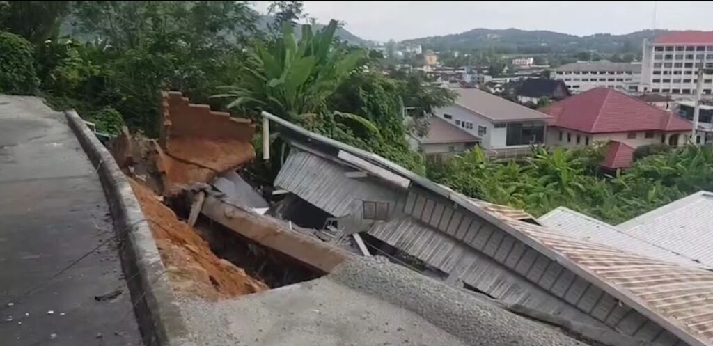 ภูเก็ต 21 ต.ค. – รองผู้ว่าฯ ภูเก็ต ลงพื้นที่ตรวจอาคารทรุดตัวถล่มลงมาทับอาคารด้านหน้า บริเวณถนนเยาวราช อ.เมือง พบใช้ฐานรากแผ่ ไม่ได้ตอกเสาเข็ม ประกอบกับมีฝนตกต่อเนื่อง ทำให้ดินอ่อนตัว ขณะนี้ได้อพยพผู้อยู่อาศัยออกหมดแล้ว ไม่มีผู้ได้รับบาดเจ็บ เตรียมออกคำสั่งห้ามใช้อาคาร และตรวจสอบเพื่อความปลอดภัย หากไม่สามารถซ่อมแซมได้ ก็ต้องรื้อถอนตามขั้นตอนต่อไป