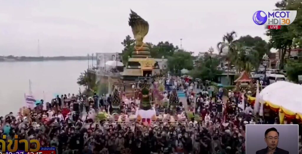 ช่วงเช้ามีการรำบวงสรวงองค์พญาศรีสัตตนาคราช เพื่อขอพรให้โตโน่ว่ายน้ำข้ามโขงได้สำเร็จ สภาพอากาศมีฝนตกลงมาช่วงประมาณตี 4 แต่เมื่อถึงเวลาทำพิธีฝนก็หยุดตก