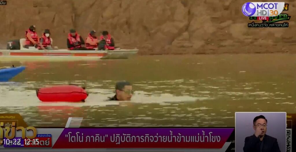 เมื่อวานนี้ (21 ต.ค.) โตโน่พูดถึงแผนการว่ายน้ำบอกว่าช่วงที่ยากที่สุดคือ “ช่วงที่ต้องว่ายจากศาลาท่าน้ำแสงสิงแก้ว ข้ามไปฝั่ง สปป ลาว เพราะช่วงนั้นจะไม่มีกระแสน้ำช่วย ต้องใช้แรงของตัวเองทั้งหมด แต่ยืนยันทุกจุดไม่กังวล เตรียมพร้อมรับแล้วไม่ว่าเกิดอะไรขึ้น