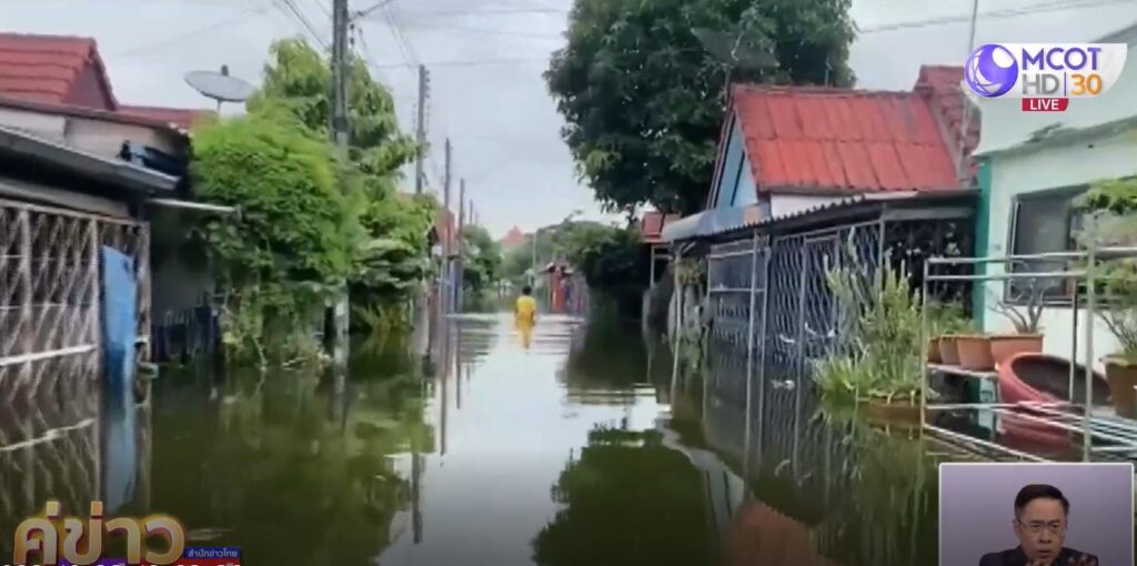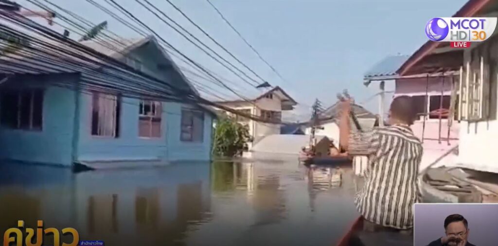 ขณะที่ระดับน้ำที่ล้นตลิ่งเข้าท่วมบ้านเรือนราษฎรในพื้นที่ โดยเฉพาะบ้านเรือนที่เป็นชุนชนขนาดใหญ่ เช่น ชุมชนชัยมงคล 2 เขตเทศบาลเมืองอ่างทอง ส่วนใหญ่เป็นบ้านชั้นเดียว สูงกว่า 1.5 เมตร ทำให้ได้รับผลกระทบอย่างหนักจนไม่สามารถอาศัยอยู่ในบ้านได้ ต้องทิ้งออกไปอยู่ด้านนอก บางรายที่ไม่มีที่ไปต้องพยายามกั้นน้ำไม่ให้เข้าภายนบ้านที่หนุนทรัพยสินไว้สูงท่วมหัว