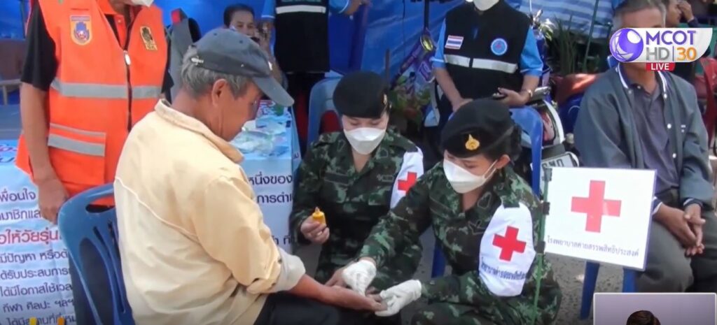 ส่วนใหญ่มีอาการป่วยจากโรคน้ำกัดเท้า อีกส่วนบาดเจ็บจากการเคลื่อนย้ายข้าวของในศูนย์อพยพ ปีนี้แต่ละครอบครัวอพยพหนีน้ำไม่น้อยกว่า 2 ครั้ง เพราะระดับน้ำท่วมสูงกว่าทุกปีที่ผ่านมา ทำให้มีบาดแผลตามร่างกาย จึงให้การรักษาและให้คำแนะนำวิธีการดูแลตนเอง ไม่ควรเดินเท้าเปล่าไปลุยน้ำ เพราะมีโรคระบาดมากับน้ำท่วมหลายโรค และสัตว์มีพิษกัดต่อยได้