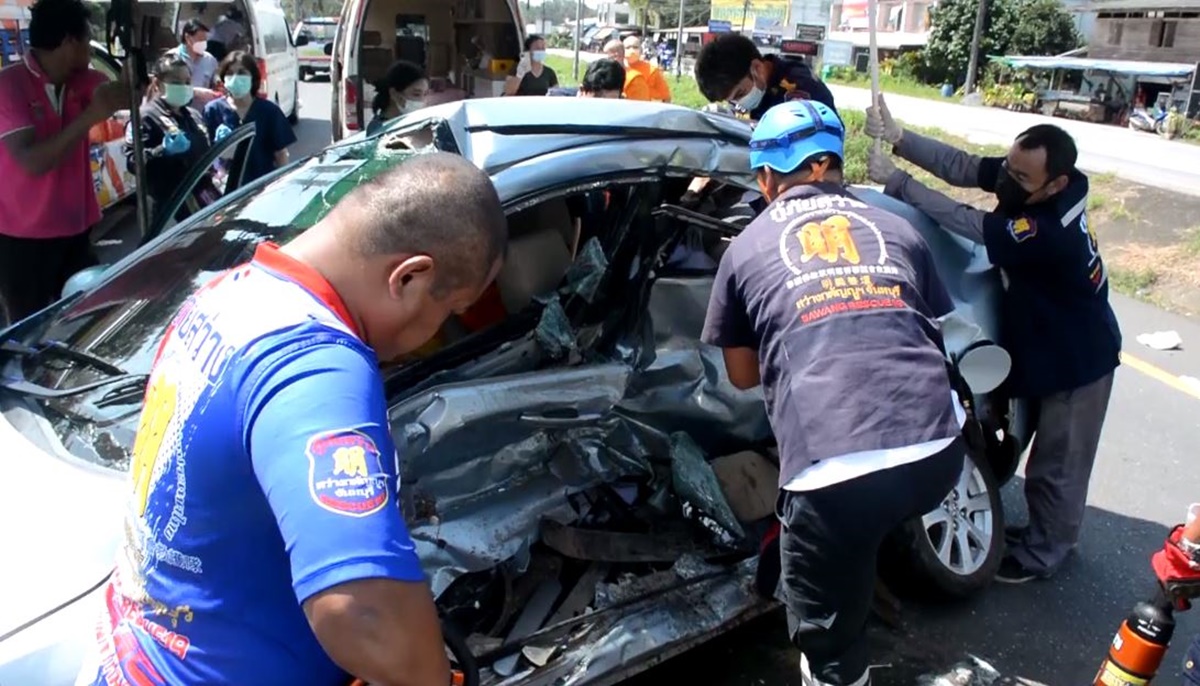 ต่อมาช่วยกันใช้อุปกรณ์ตัดถ่างงัดประตูรถฝั่งเบาะข้างคนขับ ช่วยเหลือพระสงฆ์ 1 รูป บาดเจ็บสาหัส และช่วยผู้บาดเจ็บหญิงอีก 1 ราย ที่ถูกแรงอัดจากประตูรถทับร่างติดกับเบาะผู้โดยสาร ใช้เวลา 20 นาที จึงนำร่างทั้ง 2 ราย ออกมาได้สำเร็จ ก่อนรีบนำตัวส่งโรงพยาบาล