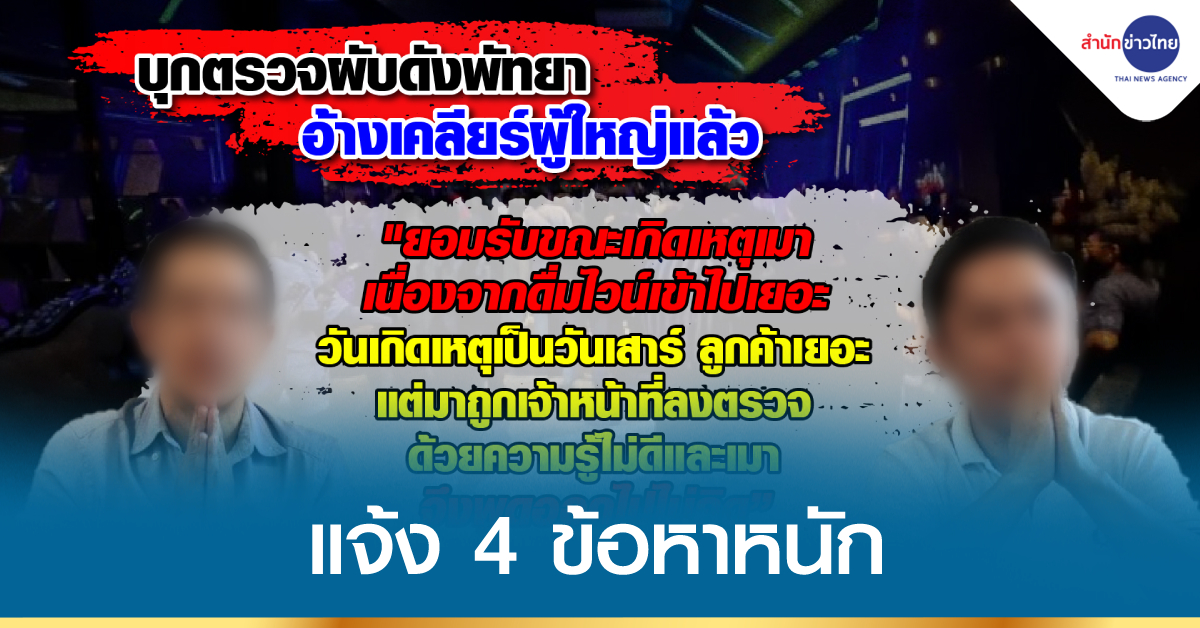 ชลบุรี 24 ต.ค. – ผู้บริหารผับดังเมืองพัทยา ตั้งโต๊ะแถลงขอโทษ หลังปะทะคารมกับเจ้าหน้าที่เข้าตรวจผับ อ้างเพราะความเมา ด้านตำรวจเตรียมเสนอปิดผับ 5 ปี และดำเนินคดีกับเจ้าของตัวจริง-หุ้นส่วน