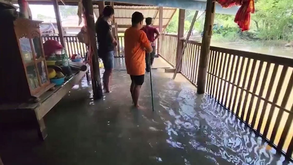 ชาวอยุธยาเริ่มล้างบ้าน หลังน้ำลดระดับ แต่ยังท่วมสูง