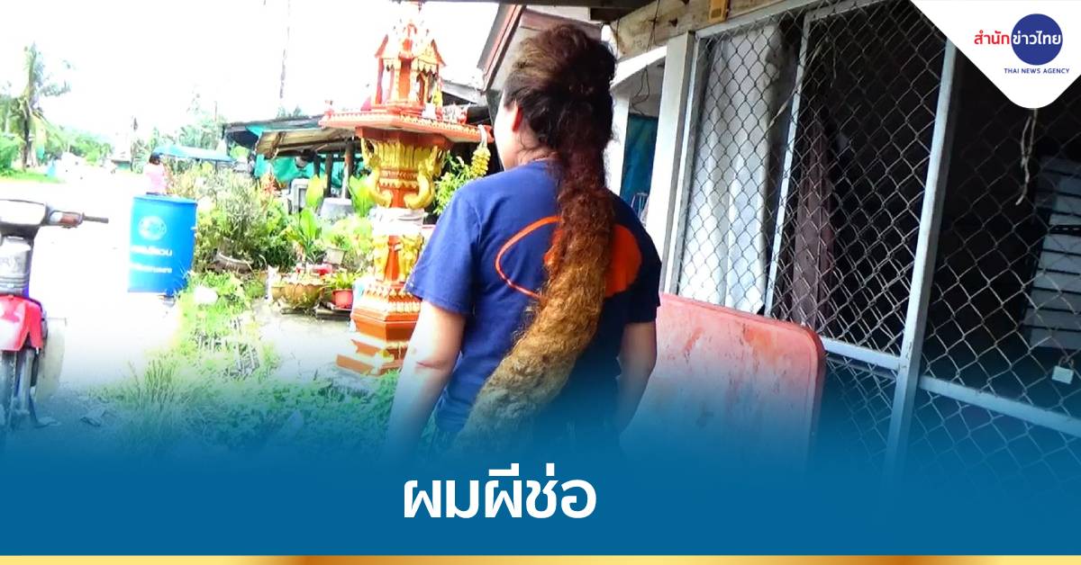 ทีมข่าวไปที่บ้านท่าเรือ ต.วังวน อ.กันตัง จ.ตรัง พบกับ น.ส.นัทชา หรือพี่ย้วน อายุ 50 ปี โดยผมมีลักษณะติดกันเป็นแผ่นยาวคล้ายกับมีกาวทาไว้ ไม่สามารถแยกออกเป็นเส้น ๆ ได้ หรือที่ชาวบ้านเรียกว่า “ผมผีช่อ” ยาว 1.17 เมตร พี่ย้วน เล่าว่ามีผมแบบนี้มานานกว่า 10 ปี ติดกันเป็นช่อเล็ก ๆ พยายามหวี ก็หวีไม่ออก ต่อมาผมเริ่มติดกันมากขึ้นเรื่อย ๆ จนเต็มศีรษะ ต้องให้คนทรงเจ้าหรือครูหมอ มาตัดให้ ปรากฏว่าครูหมอกลับไปป่วยหนักรักษาอยู่หลายวันกว่าจะหาย แต่ตัวเองไม่เป็นอะไร