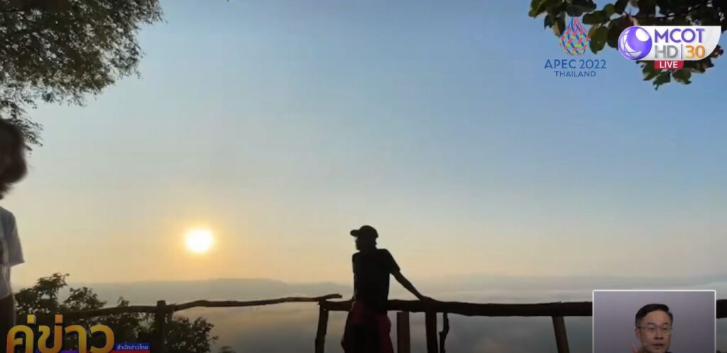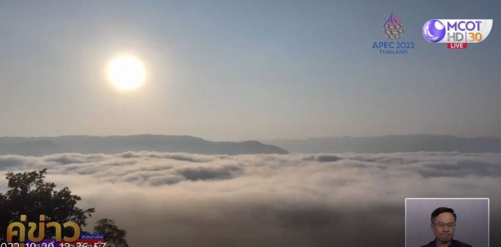 ส่วนที่ จ.เลย เช้าวันนี้อากาศเริ่มหนาว อุณหภูมิต่ำสุดอยู่ที่อุทยานแห่งชาติภูเรือ 12 องศาเซลเซียส ส่วนอุทยานแห่งชาติภูกระดึง ที่ช่วงวันศุกร์-เสาร์ จะมีนักท่องเที่ยวจากทั่วสารทิศเดินทางทดสอบร่างกาย เดินขึ้นยอดภูกระดึง สัมผัสอากาศหนาว ชมธรรมชาติที่สวยงามบนยอดภู เช้าวันนี้มีนักท่องเที่ยวสะสมบนยอดภู 473 คน โดยจุดนี้ของทุกเช้าที่ภูกระดึง นักท่องเที่ยวนิยมเดินทางไปโต้ลมหนาวที่ผานกแอ่น นั่งเฝ้ารอคอยพระอาทิตย์ขึ้น ชมทะเลหมอก