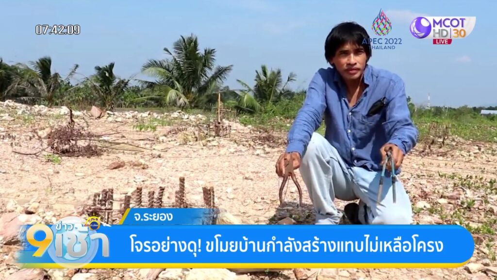 ระยอง 1 พ.ย. – โจรดุ! ขโมยสายไฟฟ้า-โครงเหล็ก ของชาวบ้าน ที่กำลังเตรียมเทเสาสร้างบ้านไปจนเกลี้ยง เหลือทิ้งไว้แต่ตอ