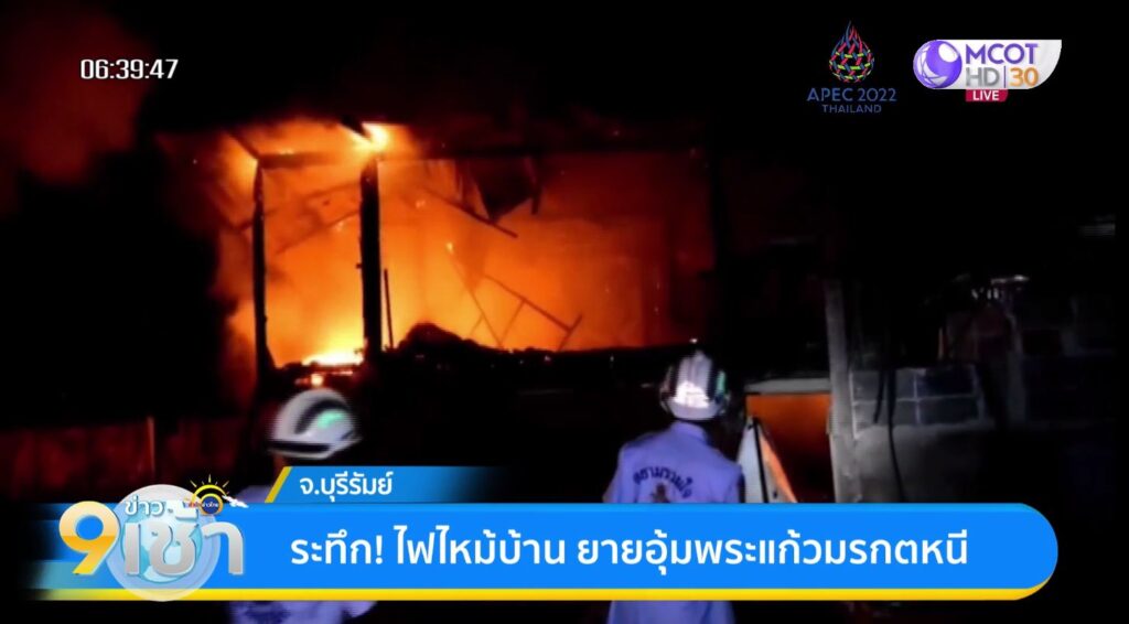 บุรีรัมย์ 2 พ.ย. – ไฟไหม้บ้านกลางดึก จ.บุรีรัมย์ ลามบ้านใกล้เสียหาย มีผู้บาดเจ็บ 1 คน ขณะที่ คุณยายคนหนึ่ง ตกใจอุ้มพระพุทธรูป พร้อมกระปุกออมสินหนี