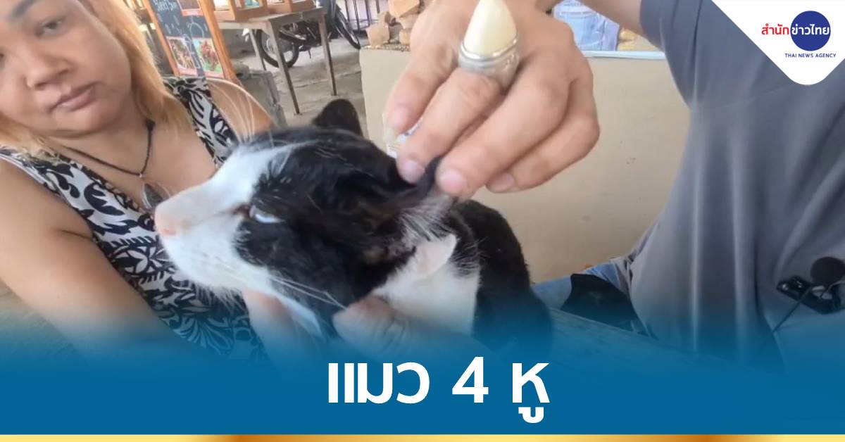 กาญจนบุรี 3 พ.ย.- “น้องเจ้าคุณ” แมวลักษณะพิเศษไม่เหมือนใคร มี 4 หู หูใบเล็กมีรูหูเหมือนปกติ ร่างกายแข็งแรงดี นิสัยขี้อ้อน เลี้ยงง่าย เชื่อเป็นหนึ่งเดียวในไทย เจ้าของเตรียมเปิดรับผสมพันธุ์