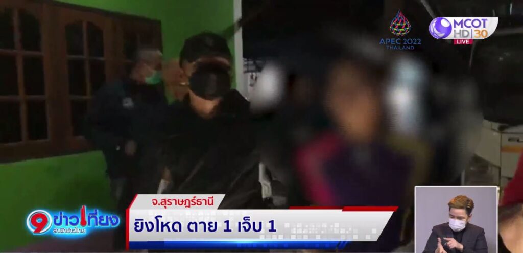 เจ้าหน้าที่คุมตัวนายเบียร์ อายุ 34 ปี ที่บุกเข้าไปรัวยิงนายภานุพงค์ อายุ 53ปี ที่บ้าน อ.กาญจนดิษฐ์ จ.สุราษฎร์ธานี ทำให้นายภานุพงค์ เจ้าของบ้านเกิดเหตุ บาดเจ็บสาหัสและเสียชีวิตที่โรงพยาบาลในเวลาต่อมา ส่วนเด็กชายอายุ 15 ปี ลูกชายนายภานุพงค์ บาดเจ็บรักษาอยู่ที่โรงพยาบาลกาญจนดิษฐ์