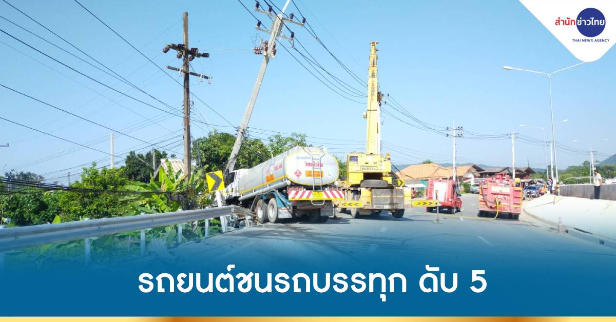 เชียงราย 5 พ.ย.-รถยนต์กำลังจะไปงานกฐิน พุ่งชนรถบรรทุกน้ำมันชนที่เชียงราย มีผู้เสียชีวิตคาที่ 5 ราย