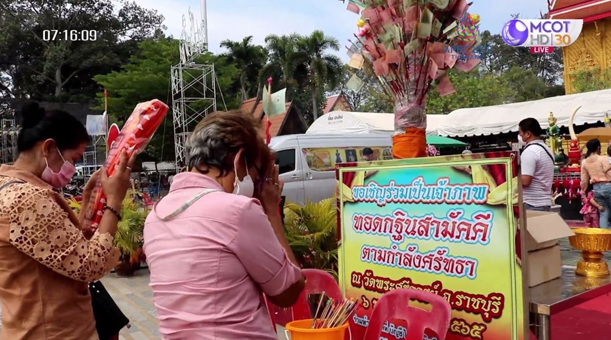 หลังจากที่ได้ร่วมทำบุญเสร็จแล้ว ประชาชนยังนำดอกกุหลาบ พวงมาลัยสีแดง และน้ำแดง ไปสักการะบูชาองค์ท้าวเวสสุวรรณ ซึ่งประดิษฐานอยู่ด้านหน้าวัด หลังจากที่มีข่าวประชาชนชาว อ.บ้านโป่ง จ.ราชบุรี เคยถูกรางวัลที่ 1 มาแล้ว บางคนมีโชครางวัลต่างๆ รวมทั้งเลขท้าย 3 ตัว 2 ตัว หลายคนเคยมาขอเรื่องหน้าที่การงาน การค้าขายก็ประสบความสำเร็จ พร้อมนำประทัดมาจุดแก้บนถวายตามที่ได้จุดธูปบอกกล่าวให้คำมั่นสัญญาไว้. – สำนักข่าวไทย