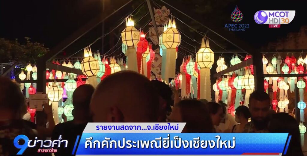 วันนี้ที่เชียงใหม่เรียกว่าเต็มไปด้วยสีสันทั่งจากโคมไฟยี่เป็งที่ประดับไปทั่วเมือง อย่างที่ลานประตูท่าแพ ซึ่งเต็มไปด้วยนักท่องเที่ยวที่แห่ไปถ่ายภาพความสวยงามจากโคมไฟยี่เป็ง รวมทั้งจุดเด่นในค่ำคืนนี้อย่างการประกวดขบวนแห่โคมล้านนา ซึ่งเริ่มเคลื่อนขบวนจากลานประตูท่าแพไปยังริมฝั่งลำน้ำปิงหน้าเทศบาลนครเชียงใหม่ ซึ่งแต่ละขบวนตกแต่งอย่างสวยงามท่ามกลางนักท่องเที่ยวทั้งชาวไทยและต่างชาติที่ปักหลักรอชมขบวนกันตลอดสองฝั่งถนน นอกจากความสวยงามของแสงไฟแล้ว ในค่ำคืนนี้ที่เชียงใหม่ยังมีความสวยงามของผู้เข้าประกวดเทพีและเทพบุตรยี่เป็ง ที่จะขึ้นประกวดรอบสุดท้ายกันในค่ำคืนนี้ ขณะที่ริมลำน้ำปิงยังมีการแสดงแสงสีเสียง และการแสดงพลุเฉลิมพระเกียรติ ใต้แสงแห่งความสุข ปิงนครามหานที ที่สวยสดงดงามด้วย .-สำนักข่าวไทย