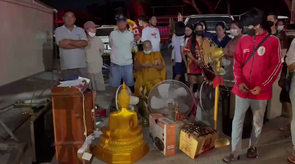 เจ้าหน้าที่ดับเพลิงกระจายกันโดยรอบศาลา ระดมฉีดน้ำไม่ให้ลุกลามไปยังกุฏิพระ ซึ่งอยู่ใกล้เคียงศาลาหลังเกิดเหตุ ขณะนั้นก็ต้องผงะ เมื่อทราบว่าก่อนเกิดเหตุไฟไหม้ มีศพอยู่ในโลงเย็นที่ตั้งบำเพ็ญกุศลมา 2 คืน อยู่บนศาลาดังกล่าวด้วย ไฟที่ไหม้ศาลาได้ลุกลามไหม้โลงเย็นที่มีศพ ก่อนพังครืนลงมาด้านล่าง เจ้าหน้าที่ใช้เวลากว่า 1 ชั่วโมง จึงควบคุมเพลิงได้ จากนั้นเจ้าหน้าที่กู้ภัยได้เข้าไปกู้ร่างจากโลงเย็นที่ถูกไฟไหม้มาใส่โลงใหม่ แล้วนำไปตั้งสวดต่อที่ศาลาอีกหลัง