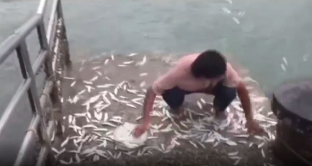 กระบี่ 10 พ.ย. – ฮือฮา! ฝูงปลาตาแมวกระโดดขึ้นมาบนสะพาน จนขาวโพลน ยังไม่รู้สาเหตุแน่ชัด ชาวบ้านบางคนเก็บได้เป็นกระสอบปุ๋ย