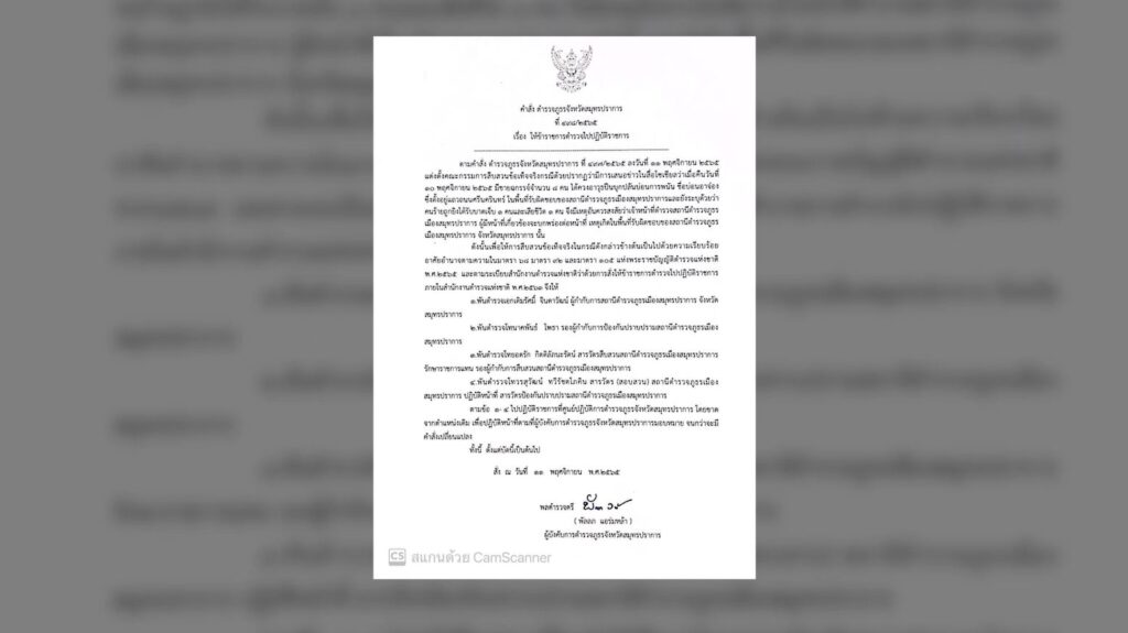 พล.ต.ต.พัลลภ แอร่มหล้า ผู้บังคับการตำรวจภูธรจังหวัดสมุทรปราการ ลงนามคำสั่งให้ 4 นายตำรวจระดับสูง สภ.เมืองสมุทรปราการ ไปช่วยราชการที่ศูนย์ปฏิบัติการตำรวจภูธรจังหวัดสมุทรปราการ สืบเนื่องจากข่าวที่ปรากฏในสื่อโซเชียลว่าเมื่อคืนวันที่ 10 พฤศจิกายน มีชายฉกรรจ์ 8 คน ควงอาวุธปืนบุกปล้นบ่อนการพนัน ชื่อ “บ่อนอาจ๋อง” ตั้งอยู่แถว ถ.ครีนครินทร์ ในพื้นที่รับผิดชอบ และมีคนร้ายถูกยิงได้รับบาดเจ็บ 1 คน และเสียชีวิต 1 คน จึงมีเหตุอันควรสงสัยว่าตำรวจของ สภ.เมืองสมุทรปราการ ผู้มีหน้าที่เกี่ยวข้องจะบกพร่องต่อหน้าที่ ดังนั้น เพื่อให้การสืบสวนข้อเท็จจริงเป็นไปด้วยความเรียบร้อย จึงให้ไปช่วยราชการ โดยขาดจากตำแหน่งเดิม ตั้งแต่บัดนี้เป็นต้นไป จนกว่าจะมีคำสั่งเปลี่ยนแปลง .-สำนักข่าวไทย