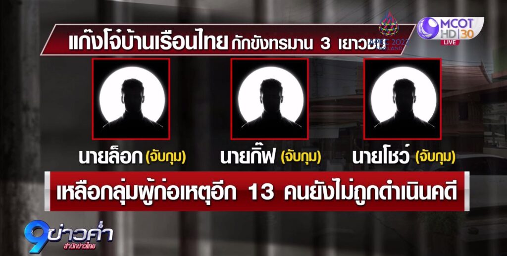 หลังจากนั้นได้ถูกทรมานรุมซ้อมในบ้านตั้งแต่วันที่ 27-29 ตุลาคม กระทั่งถูกปล่อยตัวออกมา และผู้ปกครองจึงพาไปแจ้งความที่ สน.หัวหมาก ซึ่งทราบว่าล่าสุดตำรวจสามารถจับกุมตัวผู้ก่อเหตุได้ 3 คนจาก 16 คน โดยผู้เสียหายอีกคน อายุ 18 ปี ให้ข้อมูลว่า ได้รับโทรศัพท์ว่าให้ออกมาเจอกัน ก่อนถูกควบคุมตัวไปทำร้าย รวมถึงถูกบังคับให้กินขี้บุหรี่ตลอดคืนวันที่ 28 ตุลาคม จากนั้นช่วงเช้าวันถัดมาจึงถูกพาตัวไปส่งบ้าน พร้อมกับข่มขู่ไม่ให้แจ้งตำรวจ